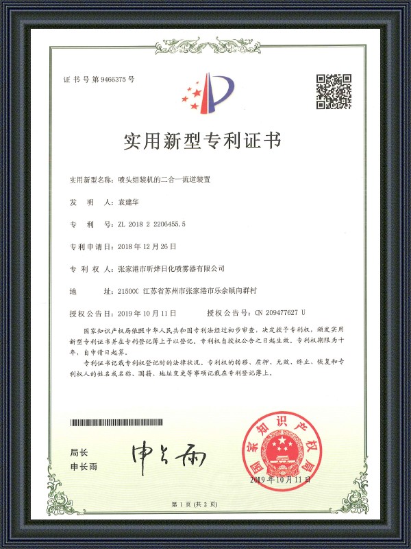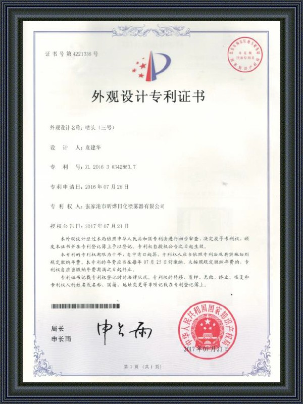 ООО «Чжанцзяганская Компания по Производству Распылителей “Синье’’» (англ.: Zhangjiagang Xinye Chemical Sprayer Co., Ltd.) было основано в 2006 году. Компания имеет три производственные базы: ①штаб-квартира в городе Чжанцзяган ②филиал в городе Чжанцзяган ③филиал в городе Хуайань. Всего компания занимает 100 000 квадратных метров и 250 000 квадратных метров строительных площадей. Это компания с сильной технической силой, с более чем 600 сотрудников, в том числе 60 старших марагеров и около 100 управления качеством и развития технологий персонала.